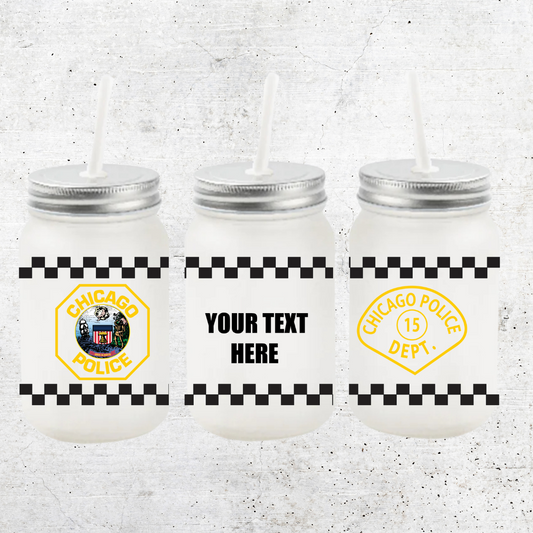 CHICAGO POLICE FROSTED 15OZ MASON JAR CUP WITH STRAW