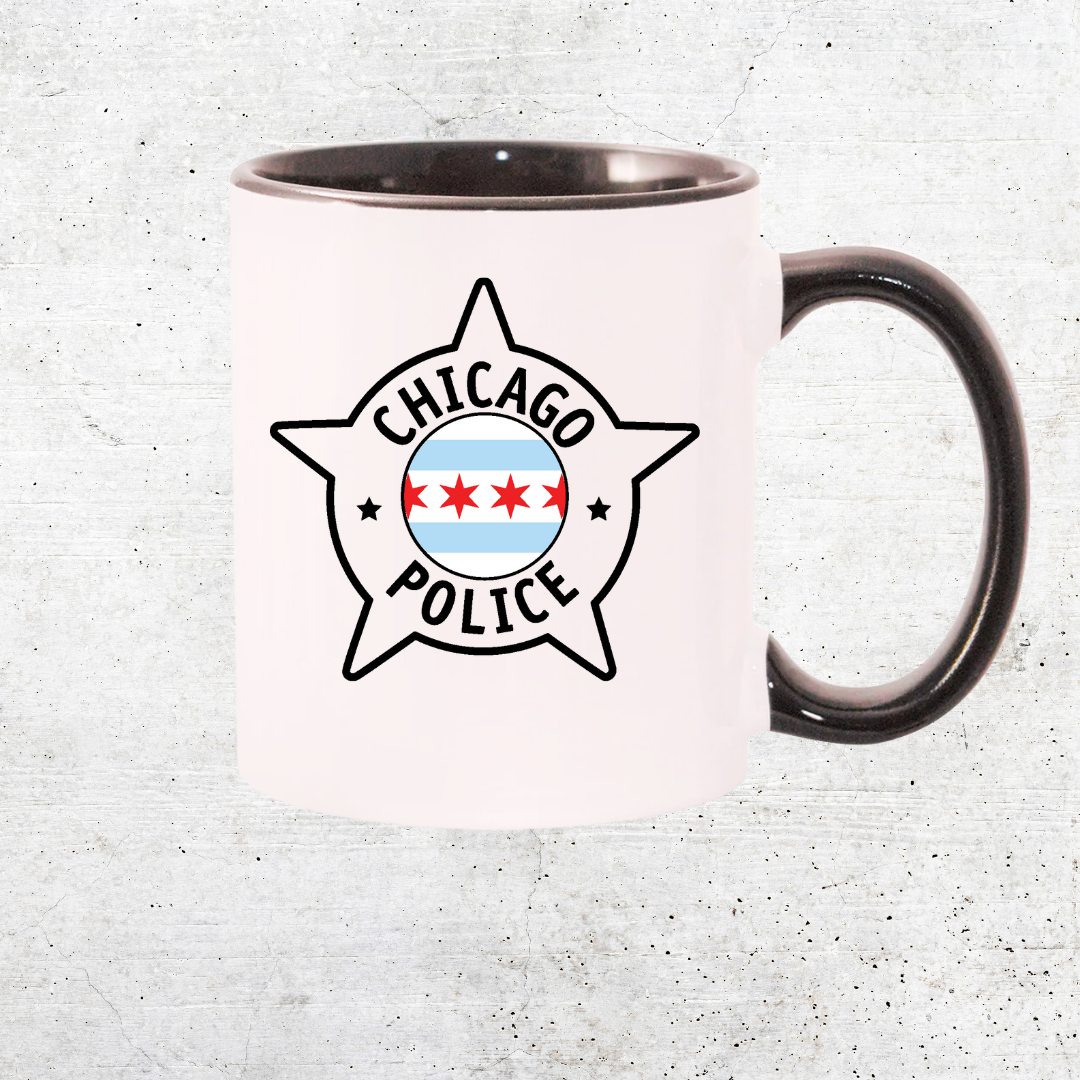 This ceramic coffee mug features the Chicago Police star with the Chicago flag. Available in 11oz and 15oz sizes, it is dishwasher and microwave safe, with a permanent image that won't peel or fade. Show your support for the Chicago Police Department with this high-quality mug.
