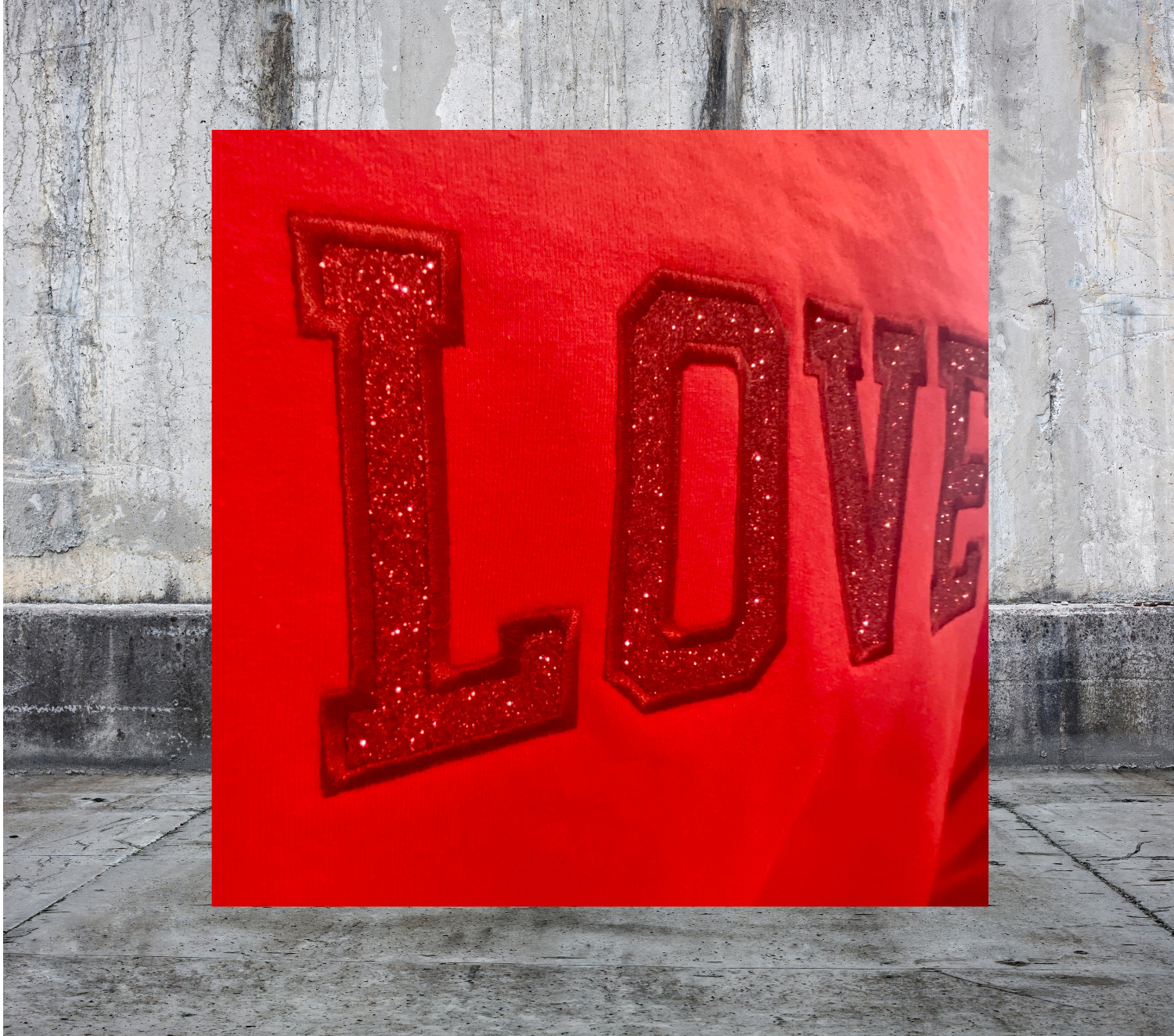 LOVE EMBROIDERED/GLITTER CREWNECK SWEATER