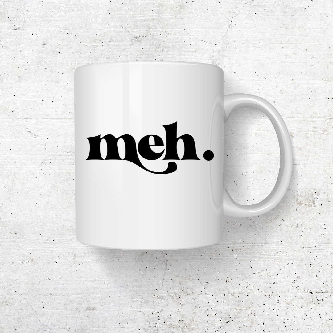 Add some personality to your daily routine with our MEH. COFFEE MUG. Available in 11oz and 15oz sizes, this sturdy ceramic mug features a fade-resistant design that can withstand repeated washing. Plus, it's both dishwasher and microwave safe for maximum convenience.