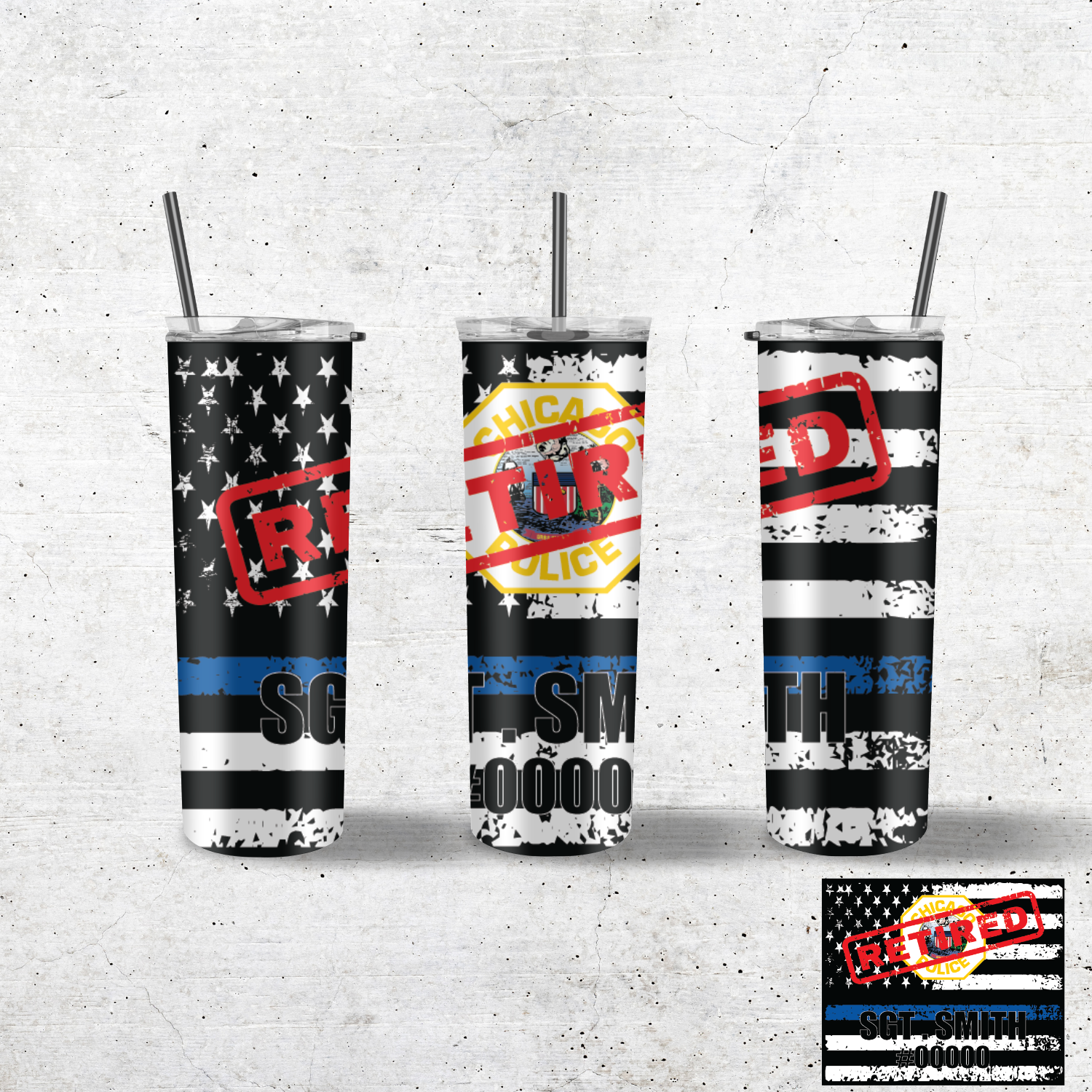 This RETIRED CHICAGO POLICE OFFICER 20OZ TUMBLER is perfect for the retiring officer or boss. Customized with Rank, name, and badge number, it's a lasting and meaningful gift. Constructed with stainless steel, it's built to keep hot and cold drinks at the desired temperature for long periods of time.