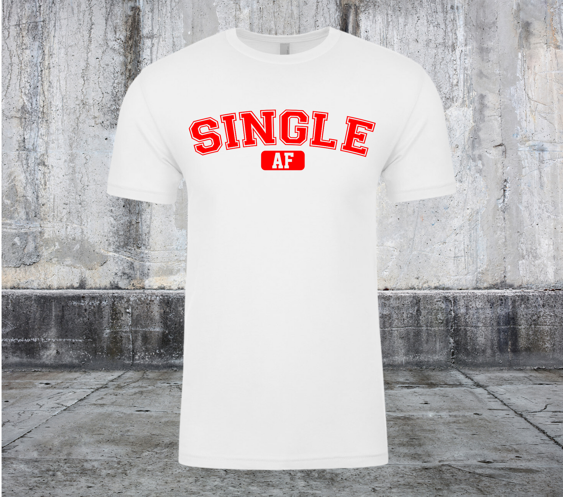 Choose between a t-shirt or crewneck sweater for displaying your relationship status this Valentine's Day with SINGLE AF. Expertly show the world where you stand using factual and objective language, without any subjective language or exclamation points. Whether you go for a t-shirt or sweater, make a bold statement with percentages, facts, or numbers.